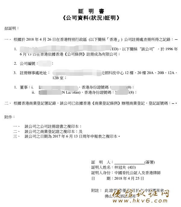 具体办理事项:中国认可的公证人公证+中国法律服务(香港)有限公司加盖转递章。