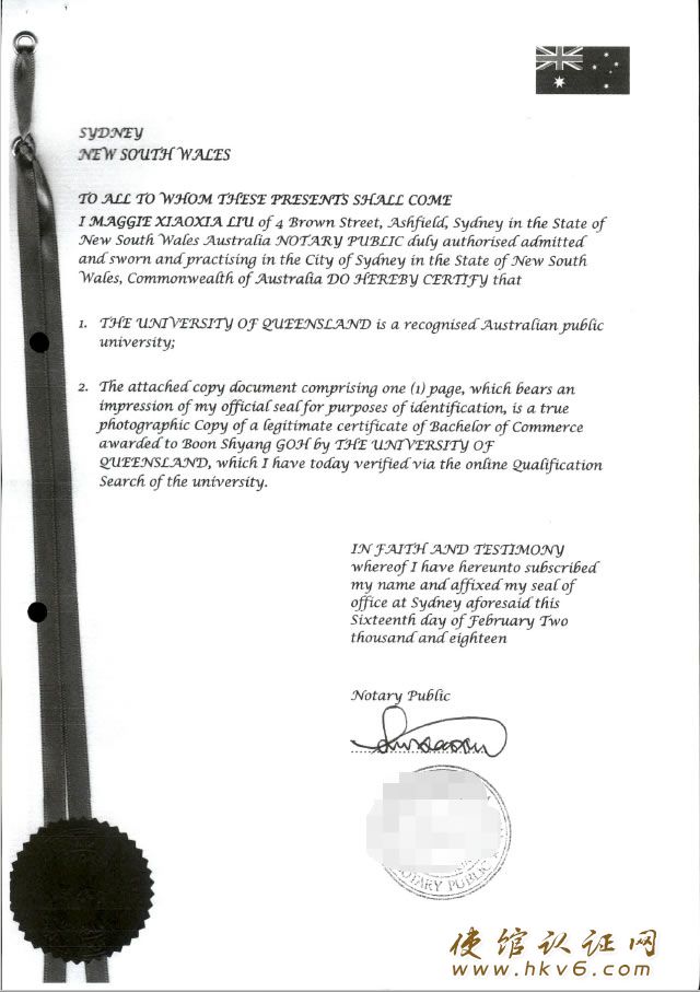 我司针对学士学位有很丰富的公证经历,办理此类公证只需提供证书清晰的扫描件以及澳洲有效的签证号即可办理,经国际