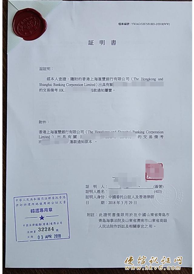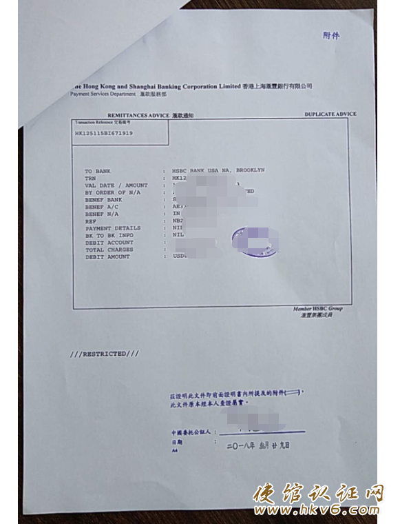汇丰银行付款交易记录公证用作诉讼依据