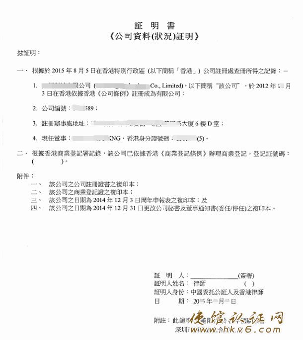 香港公司深圳办理外商投资做香港公司主体资格公证