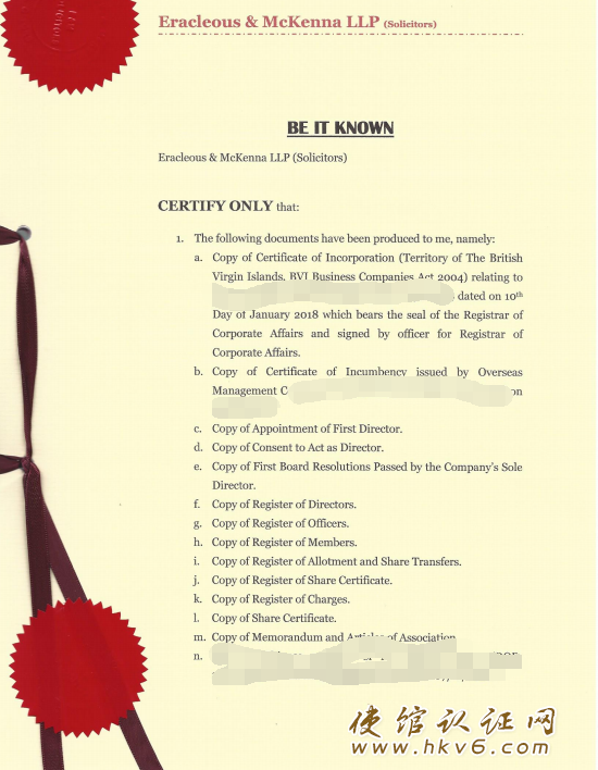 BVI公司文件使馆律师公证见证