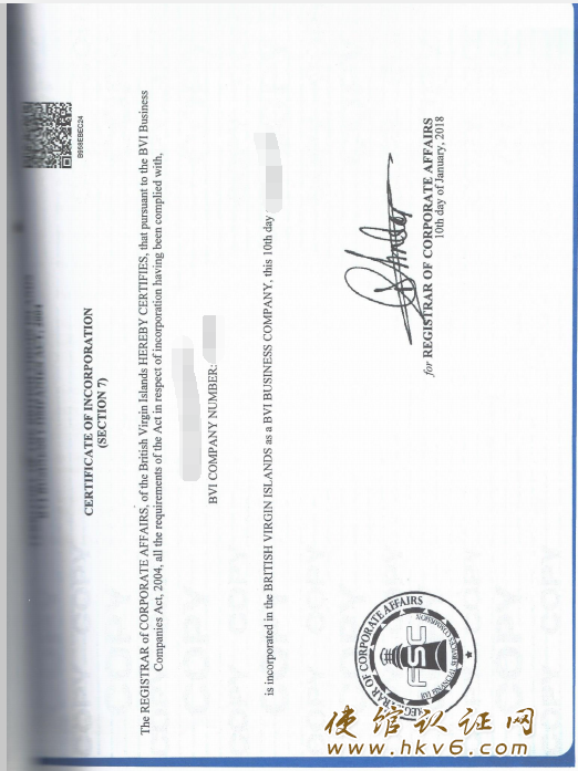 BVI公司注册证书 (扫描件)